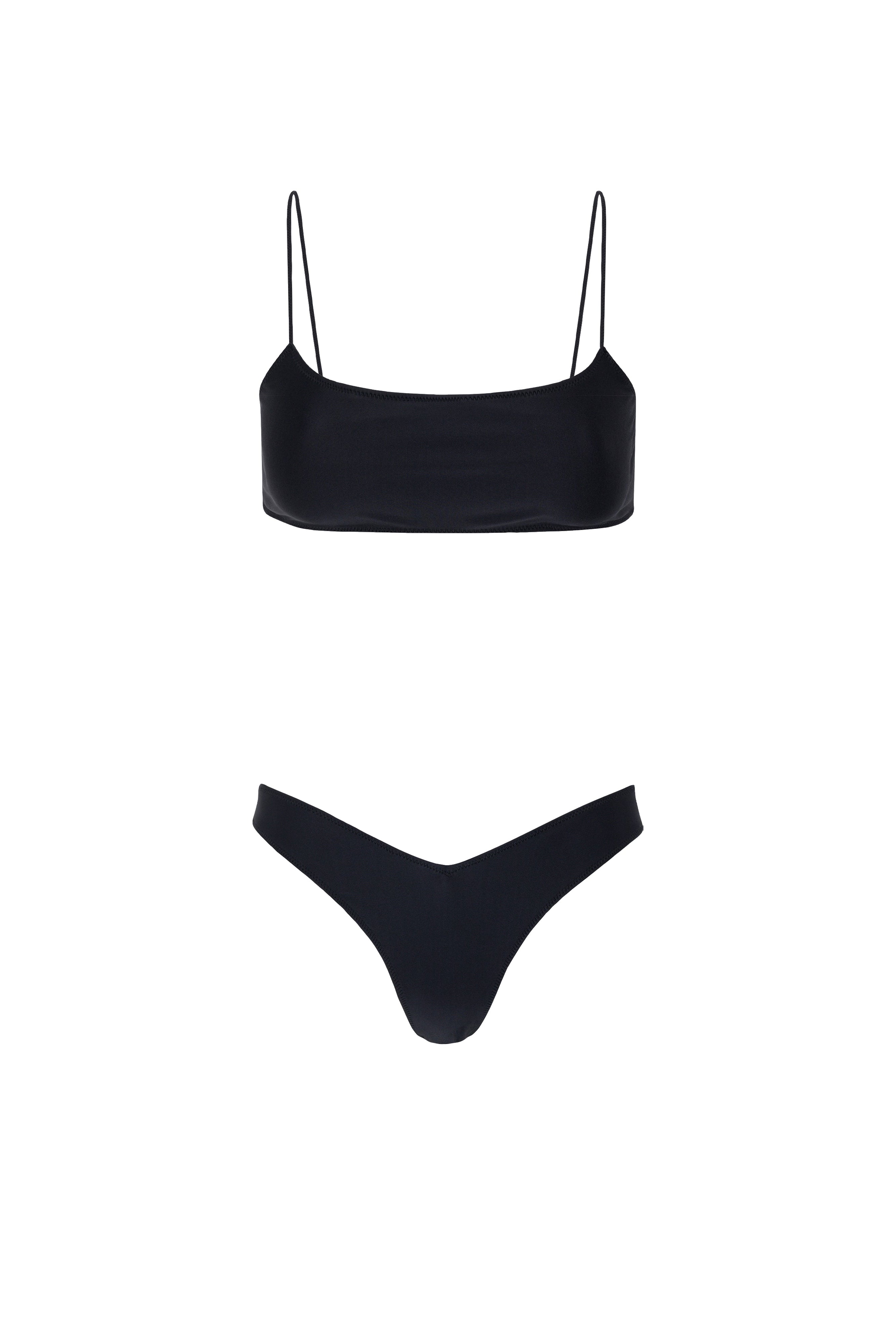 A scoop bikini top featuring our Signature Linguine Strap - thin yet durable straps for minimal tan lines and maximum comfort. A high-waisted cheeky bottom with a flattering V-shape fit in the front.