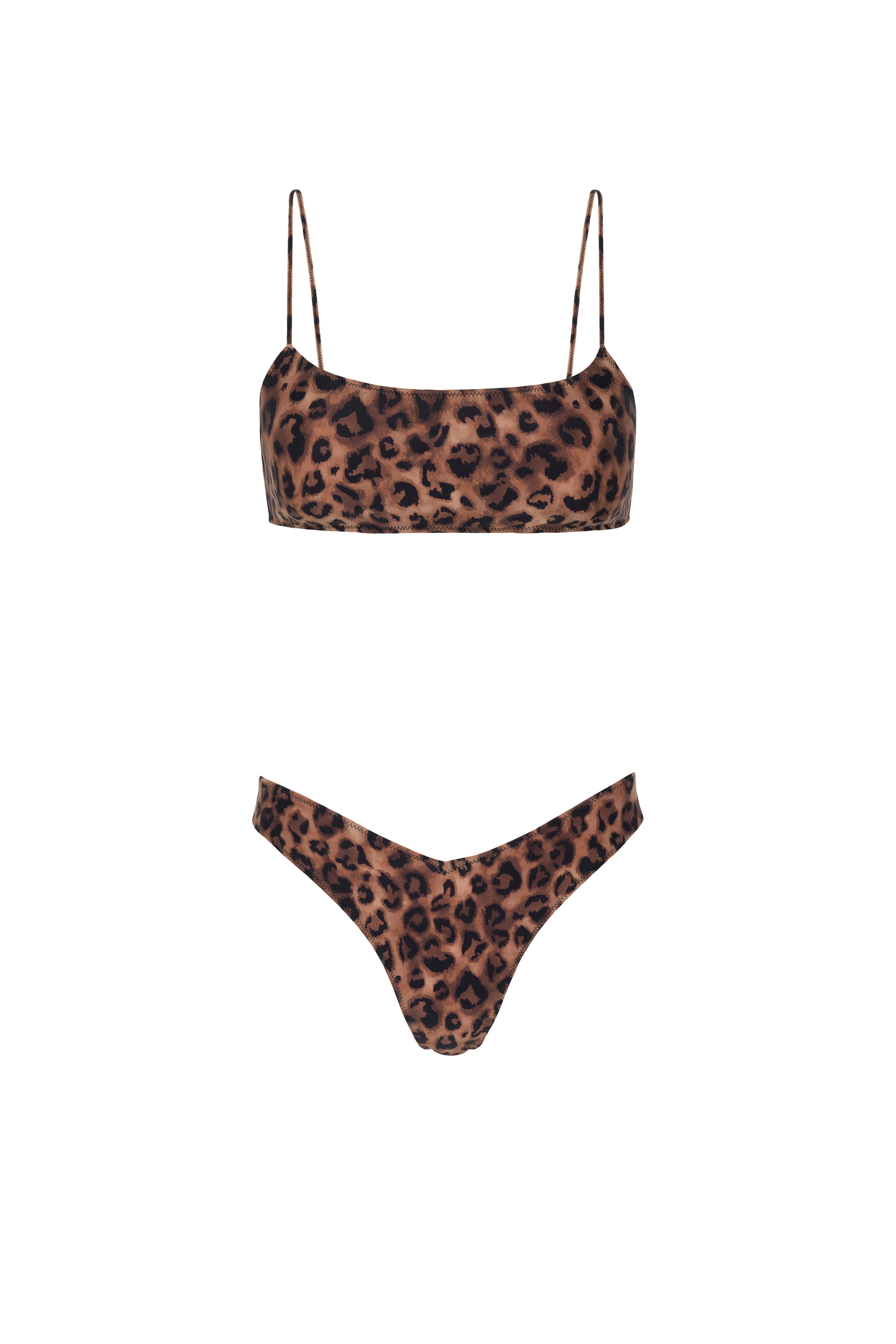 A scoop bikini top featuring our Signature Linguine Strap - thin yet durable straps for minimal tan lines and maximum comfort. A high-waisted cheeky bottom with a flattering V-shape fit in the front.