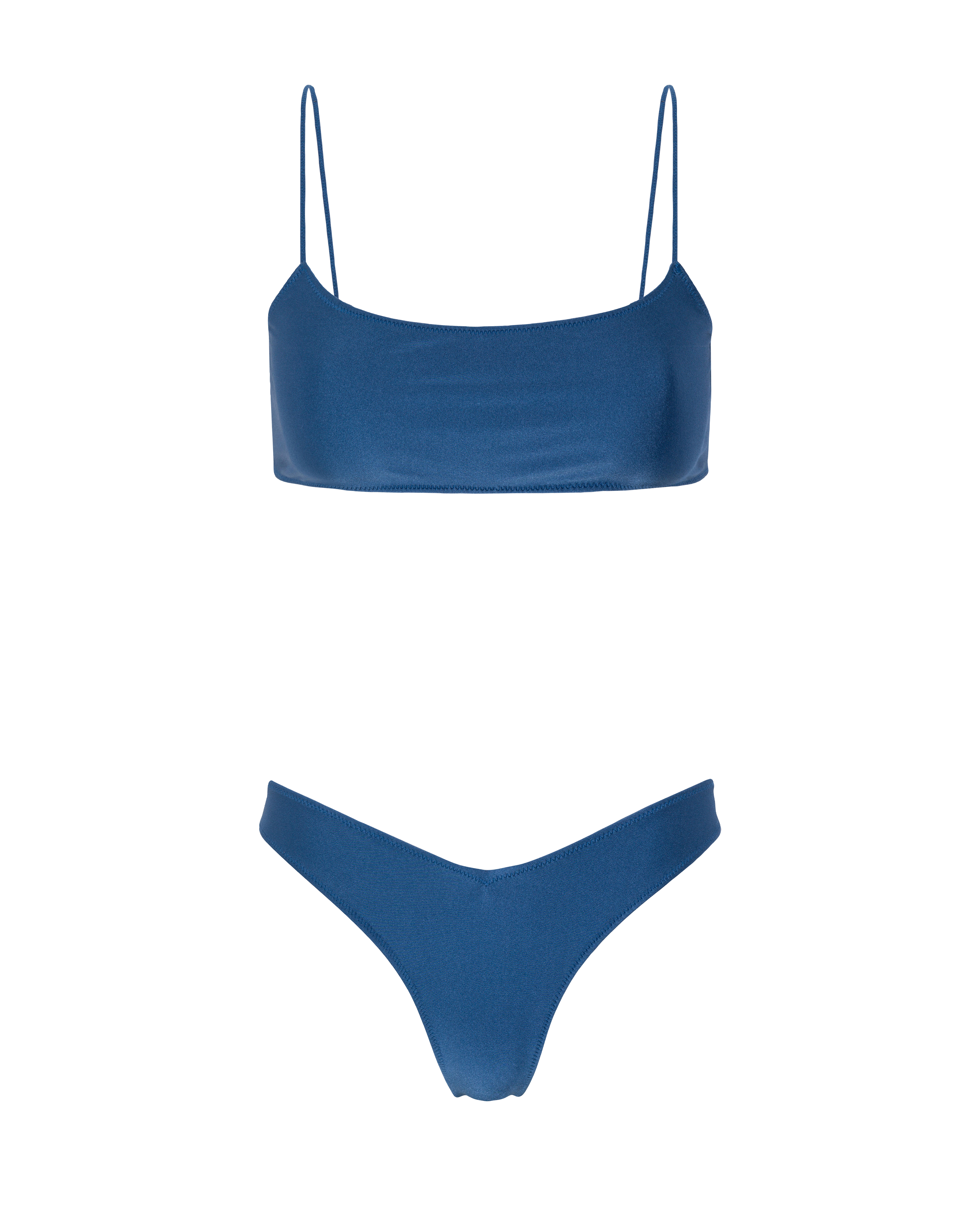 A scoop bikini top featuring our Signature Linguine Strap - thin yet durable for minimal tan lines and maximum comfort. Made with the finest Italian fabric, this top is perfect for staying stylish and active in the sun!