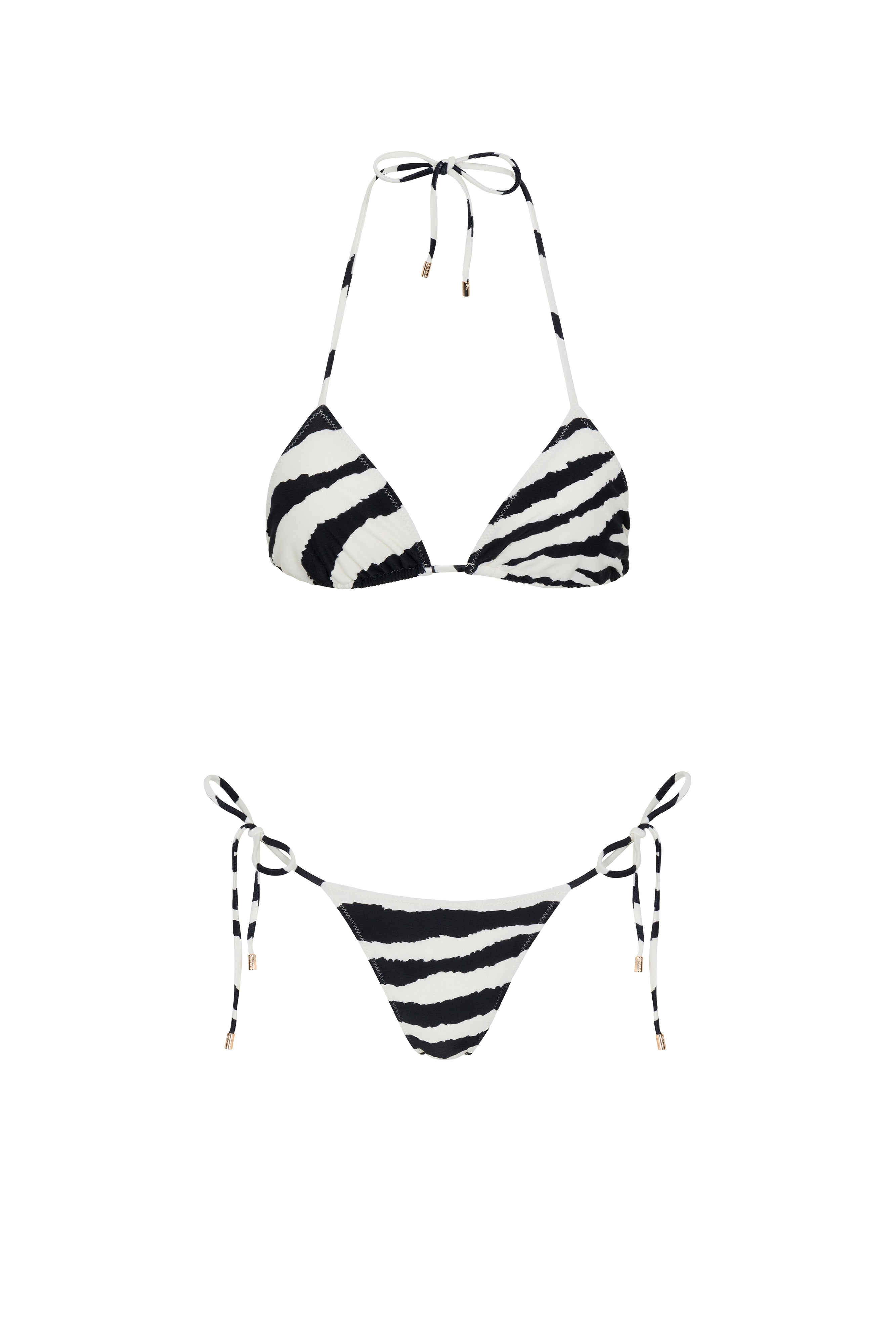 Paired with a classic high-waisted bottom with side ties for a customizable fit.