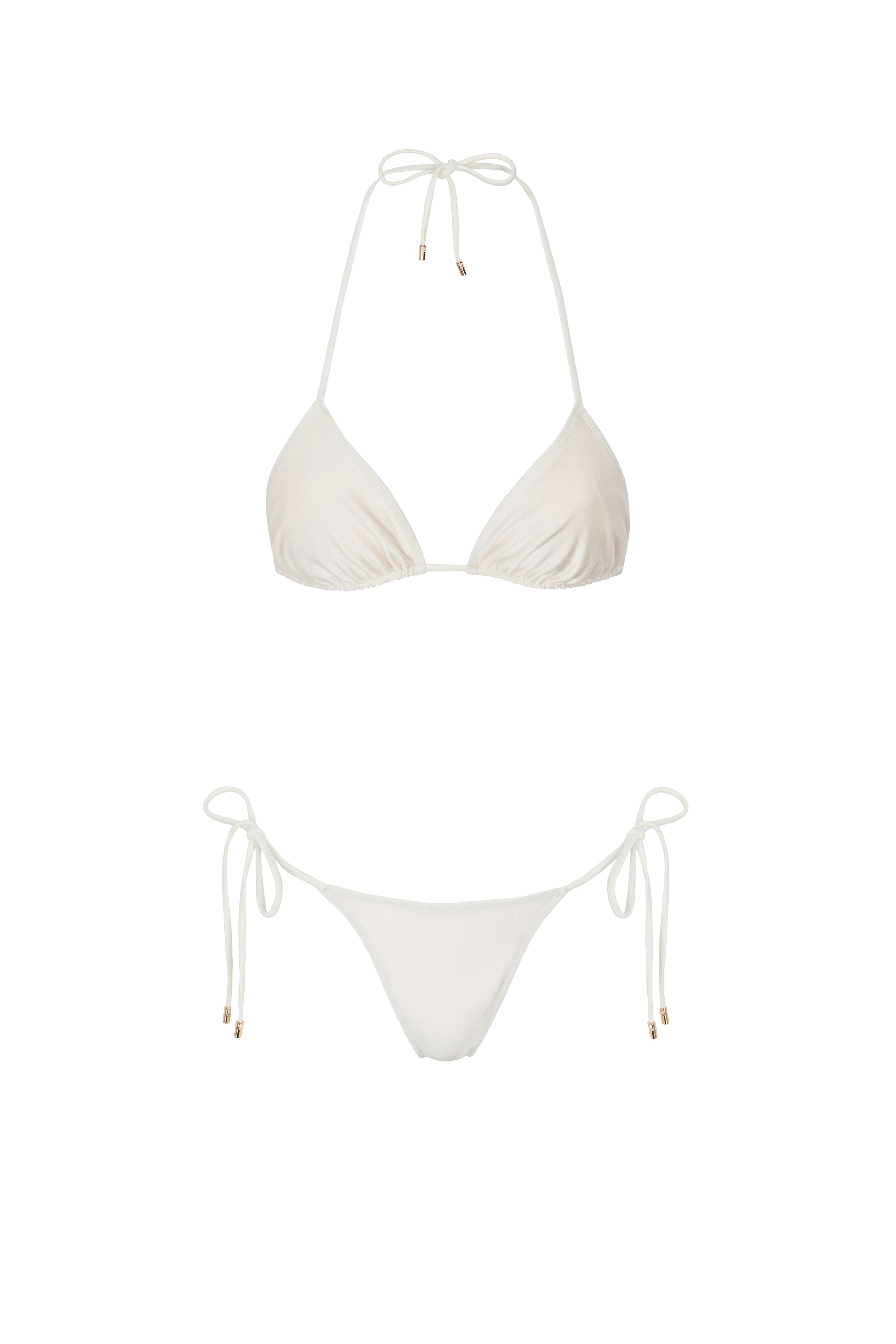 Paired with a classic high-waisted bottom with side ties for a customizable fit.