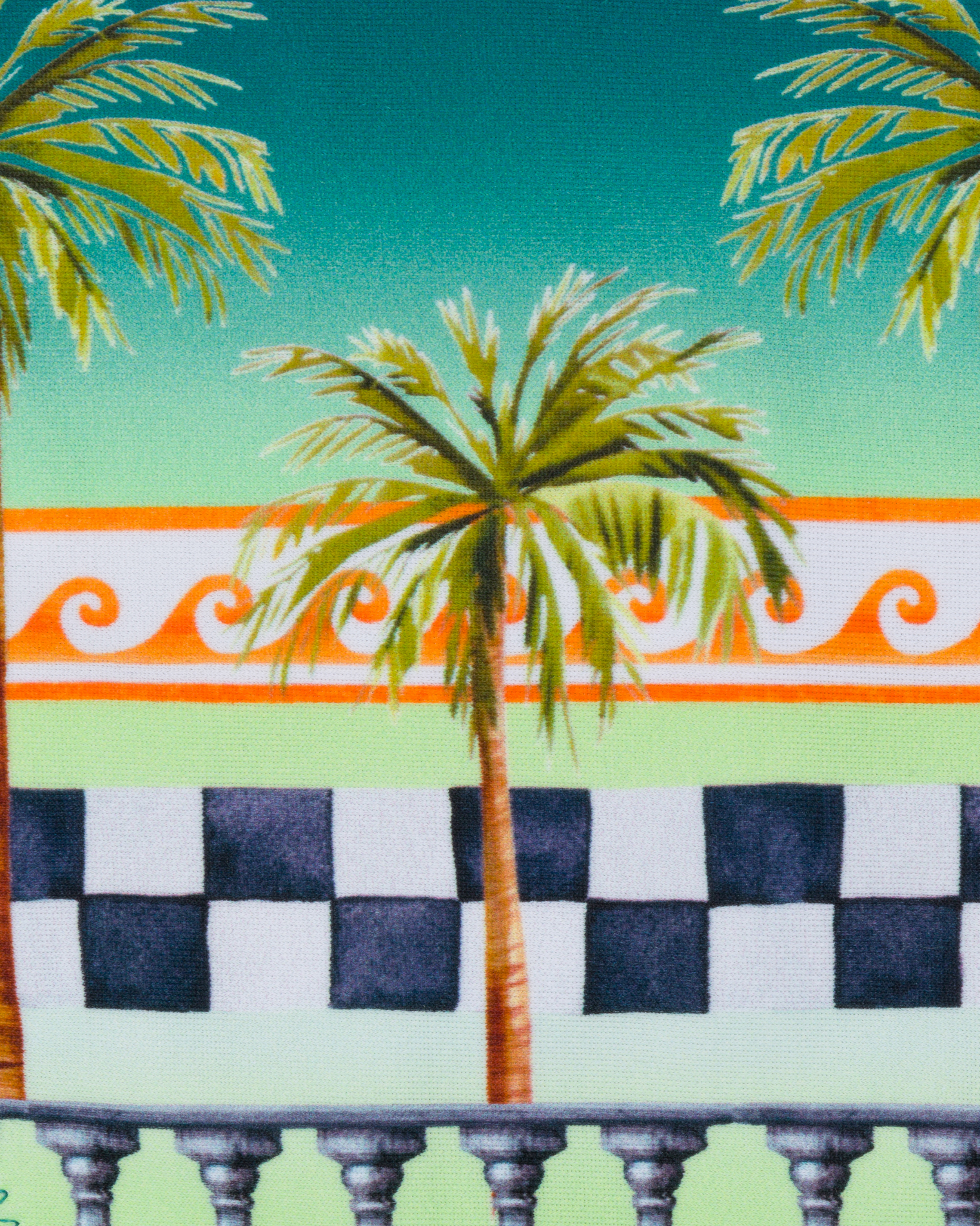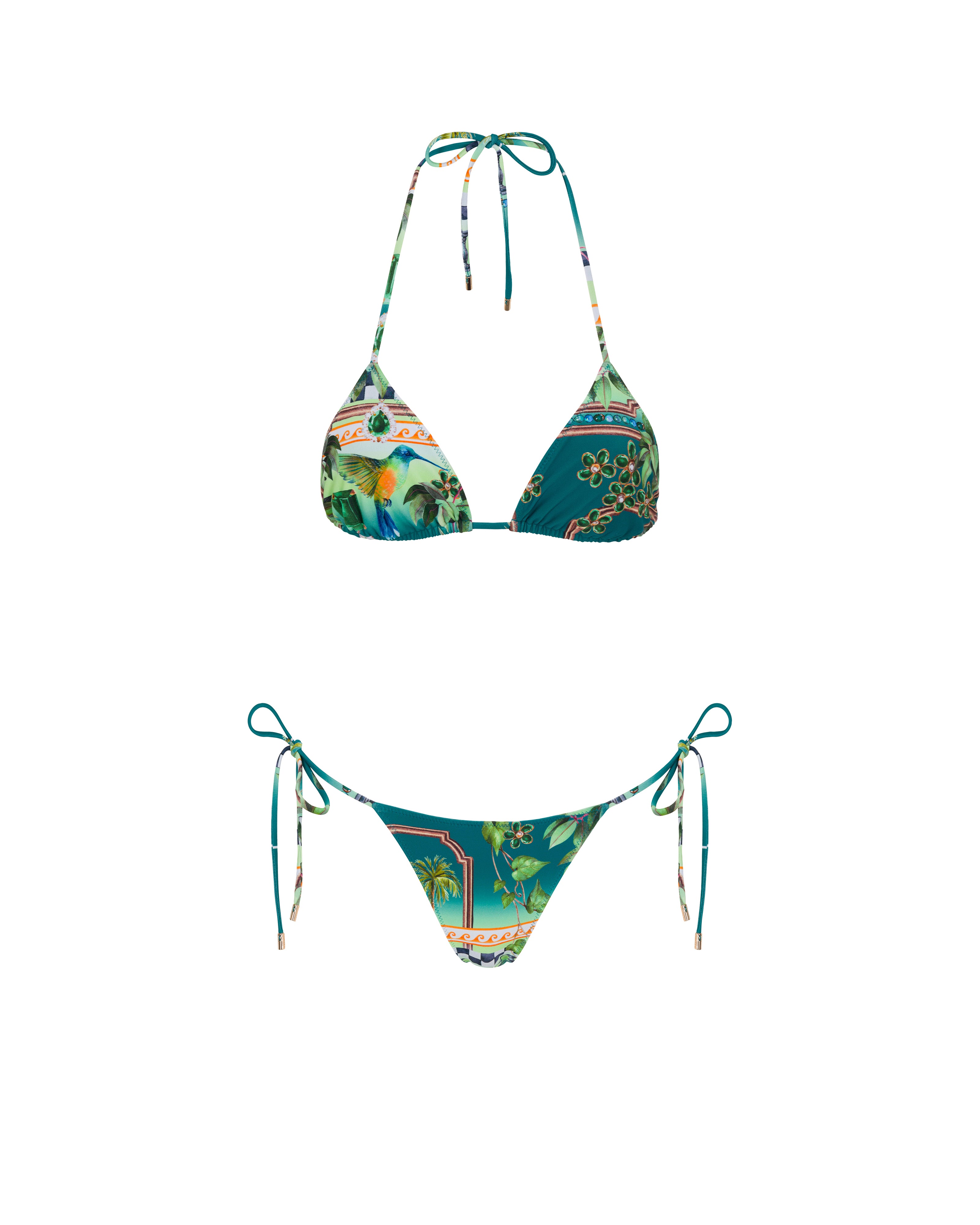 Paired with a classic high-waisted bottom with side ties for a customizable fit.